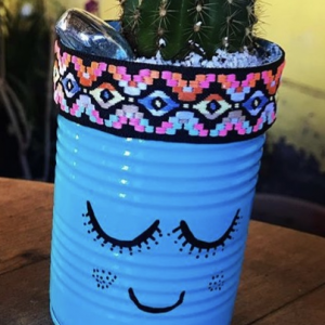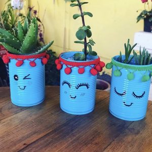 Maceteros elaborados en base a la reutilización de diferentes materiales reciclables como; vidrio, lata y plástico. Acompañado por lindas suculentas y/o cactus.